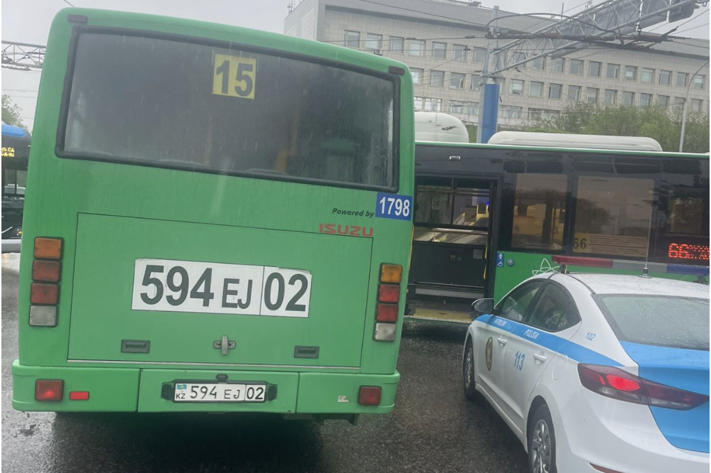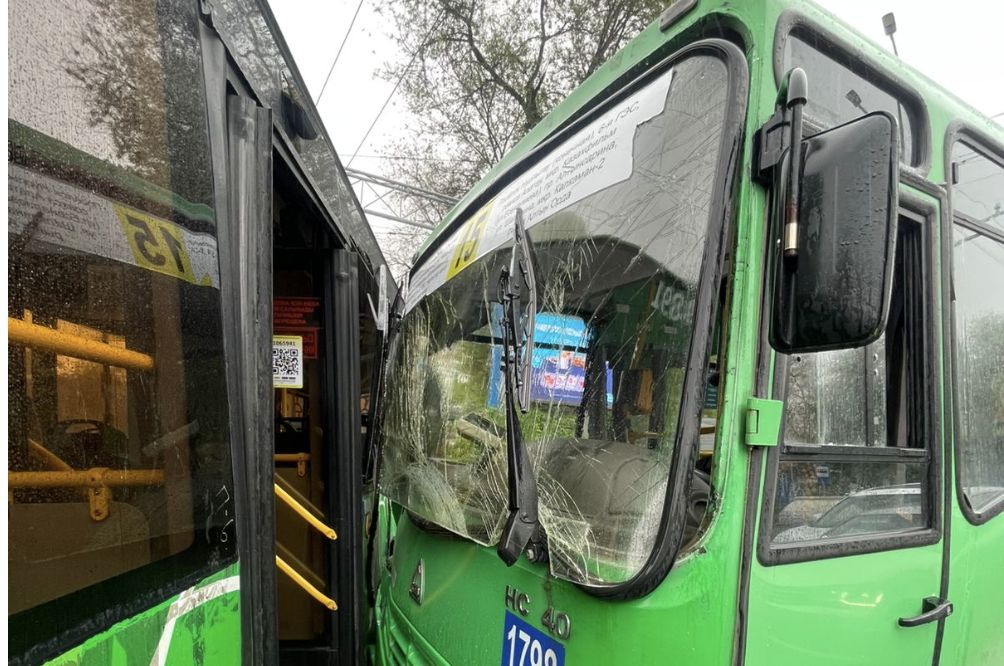 N15 бағыттағы автобустың жүргізушісі Сүлейменов көшесімен солтүстік бағытта келе жатып, Жандосов көшесімен қиылыста солға бұрылып, жаяу жүргіншілерді өткізіп тұрған 66-бағыттағы автобуспен соқтығысқан.