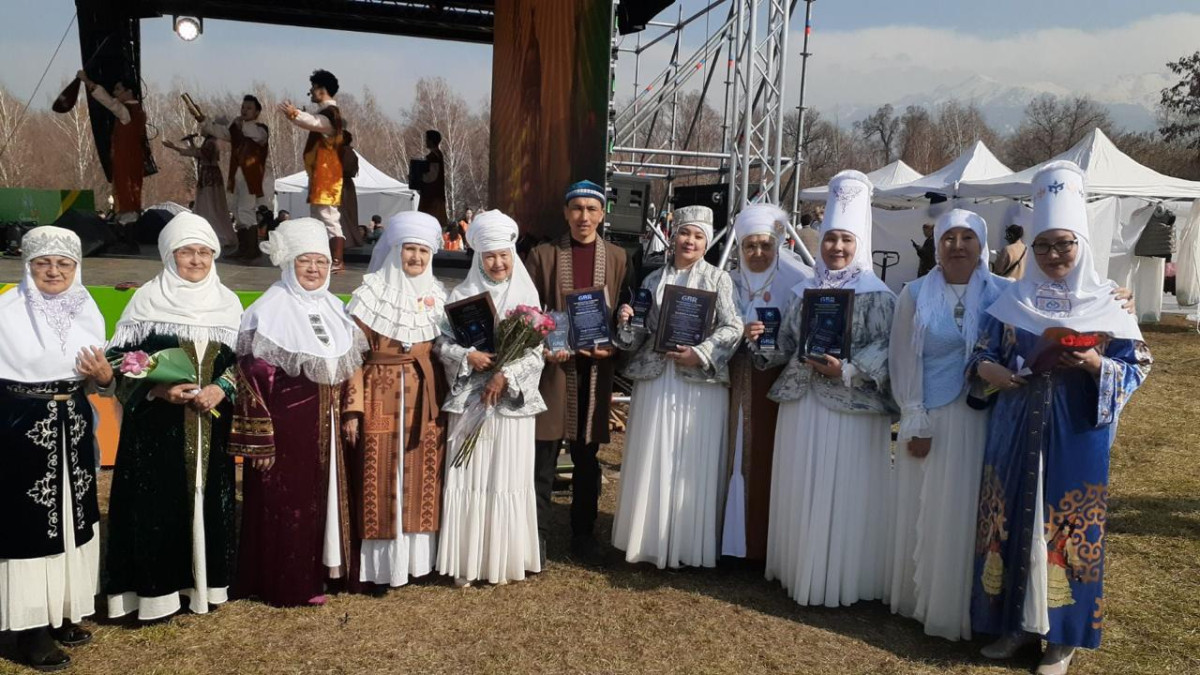 Көптеген алматылықтар мен мегаполис қонақтары куә болған іс-шара барысында ұлттық киім киген әйелдер алып шаңырақтың астына тоқылған сырлы сырмақты жайып шықты.