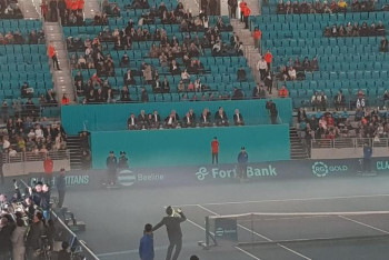 Нұр-Сұлтан, BAQ.KZ тілшісі. Елордадағы "Барыс Арена" спорт кешенінде өтіп жатқан Рафаэль Надаль мен Новак Джокович арасындағы қайырымдылық матч мәресіне жетті.