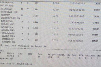 Ұшақ апаты: Бортта болған жолаушылар тізімі жарияланды