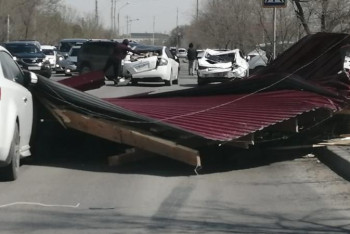 Атырау, BAQ.KZ тілшісі. Атырауда кенеттен қатты жел тұрып, көп қатарлы үйдің шатырын ұшырып әкетті. Ұшқан шатырдың бір бөлігі жол жиегіндегі бірнеше көлікті басып қалған. Абырой болғанда көлік ішінде адам болмапты.
