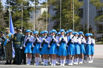 Көкшетау, BAQ.KZ тілшісі. Көкшетауда 7 мамыр – Отан қорғаушылар күні қарсаңында мектеп оқушылары арасында сап түзеуден байқау өтті.