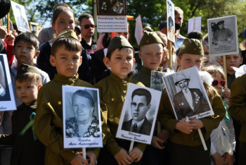 Шығыс Қазақстан облысы, BAQ.KZ тілшісі. Шығыс Қазақстан облысының орталық шаһарында өткен мерекелік шеруге 25 мың қала тұрғыны батыр бабаларының суреттерін алып шықты.