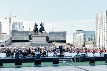 Дина Нұрпейісова атындағы Атырау облыстық Академиялық қазақ халық-аспаптар оркестрінің мерекелік концерті Исатай мен Махамбет атындағы алаңда өтті, деп хабарлайды BAQ.KZ.