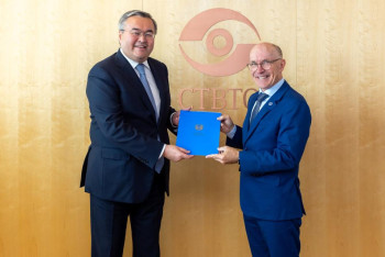 Венадағы халықаралық ұйымдар жанындағы ҚР Тұрақты өкілі Мұхтар Тілеуберді Ядролық сынақтарға жаппай тыйым салу туралы шарт ұйымы Дайындық комиссиясының Атқарушы хатшысы Роберт Флойдқа сенім грамоталарын табыс етті, деп хабарлайды BAQ.KZ.