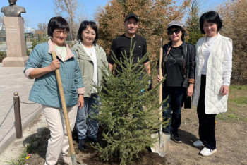 Жетісулық түлектер күрделі жөндеу жұмыстары жүргізіліп, жаңа серпін алған мектебіне 25 түп Тянь-Шань шыршасын отырғызды.