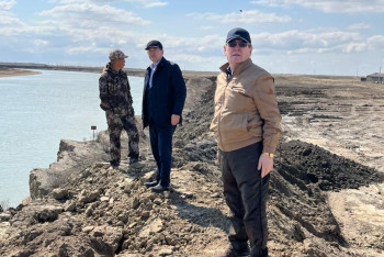 Илья Жақанов бөгет салып жатқан жастарға бата берді