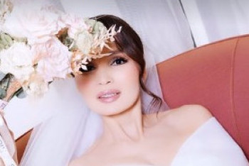 Әнші Қайрат Нұртастың жары, актриса Жұлдыз Әбдікәрімова той көйлегін киіп, видео түсірді, деп хабарлайды BAQ.KZ.