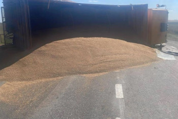 Қостанай облысында астық тиеген жүк көлігі аударылып, жолды жауып қалды