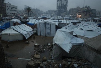 Газа секторында нөсер жаңбыр мен қатты желден Израиль шабуылдары салдарынан баспанасыз қалған палестиналықтар паналап отырған шатырлар су астында қалды, деп хабарлайды BAQ.KZ Anadolu Ajansı агенттігіне сілтеме.