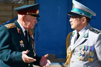 Алматыда әскери қызметшілер қарт майдангерді 102 жасқа толған туған күнімен құттықтады