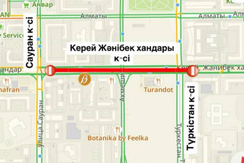 Астанада 19-21 шілде аралығында Керей Жәнібек хандар көшесінің бір бөлігі ішінара жабылады.