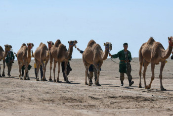 Рекорд: Алматы облысында әлемдегі ең үлкен түйе керуені өтті