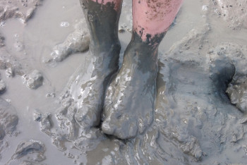 Алматыда аудандардың бірінде әйел мен балалар батпаққа батып, жолда жүре алмай қалған
