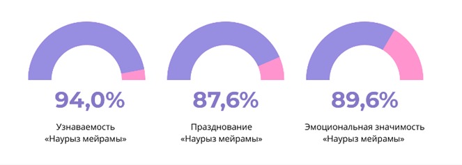 Қоғамдық қабылдау бойынша сөзсіз көшбасшы – Наурыз мерекесі. Қазақстандықтардың 94%-ы бұл мерекені жақсы білсе, 87,6%-ы оны атап өтеді. Азаматтардың басым бөлігі үшін Наурыз – жаңару мен ұрпақтар сабақтастығының символы, қоғамды ортақ құндылықтар төңірегінде біріктіретін дәстүрлер көрінісі, - делінген зерттеуде.